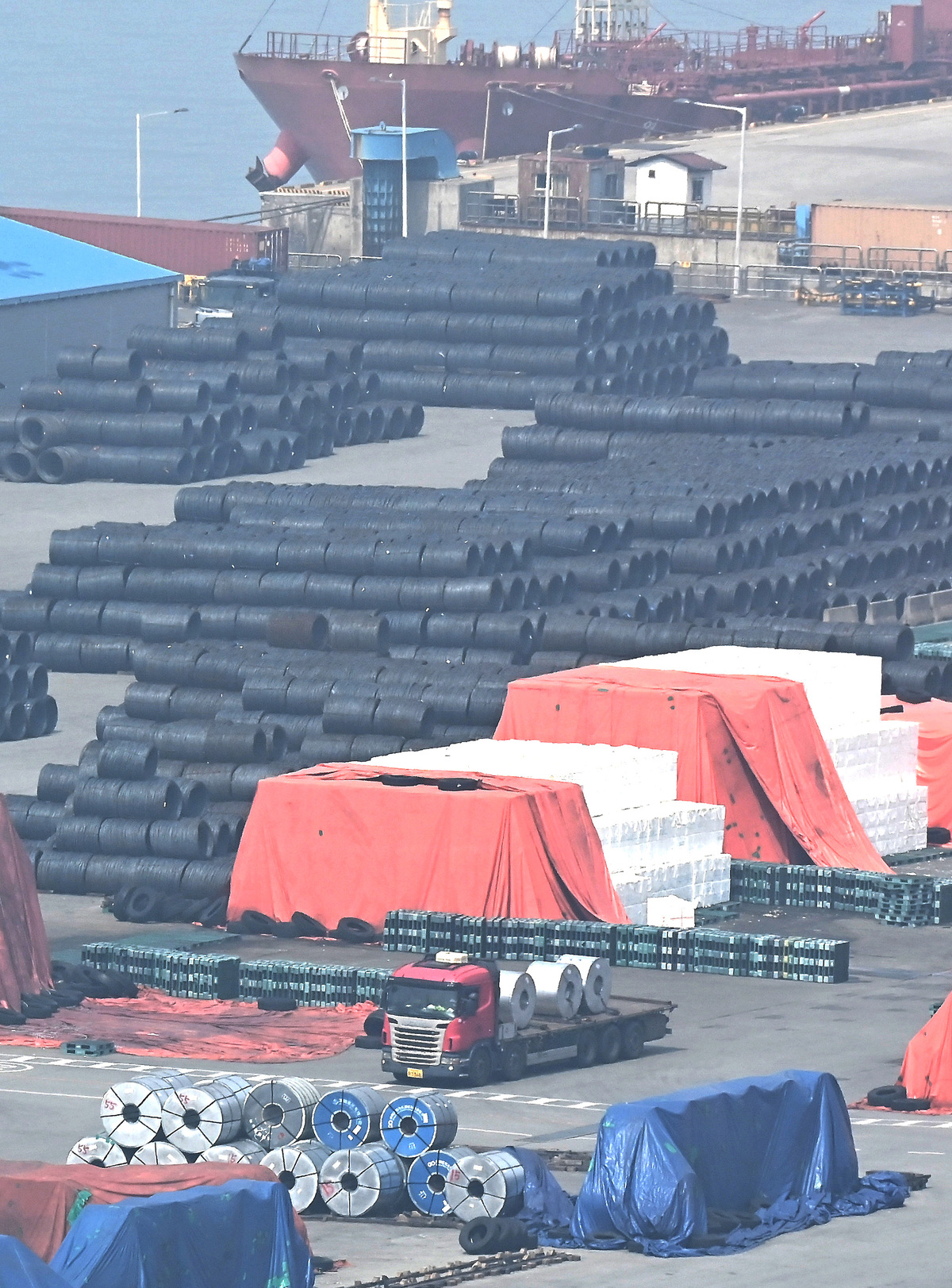경기 평택시 포승읍 평택항 야적장에 철강제품이 쌓여있는 모습. 뉴시스