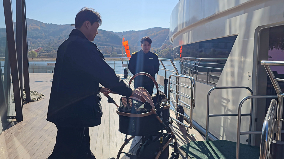 이날은 강아지 손님도 함께 승선했다. 강아지 ‘토토’(7)는 가족과 함께 첫 남이섬 나들이를 위해 크루즈에 탑승했다. 토토는 중장년층 손님들의 관심을 한몸에 받았다.