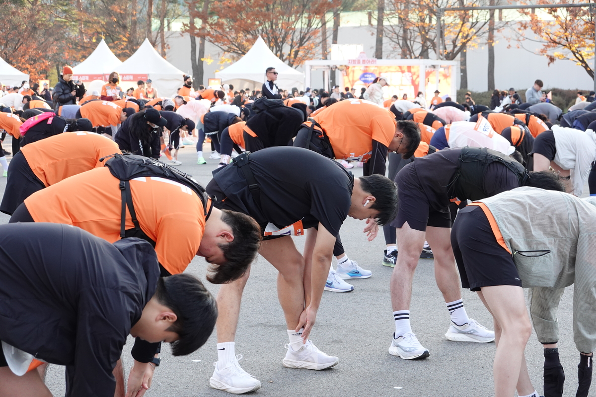 확실히 ‘러닝’이 요즘 대세가 됐다는 것을 느낄 수 있었다. 아침 8시 무렵부터 여의도역 인근에는 지방이가 그려진 주황색 핏땀런 러닝 티셔츠를 입은 참가자들이 대회장을 향해 걸어가고 있었다. 공원에서는 지방이 조형물, 지방이 인형탈과 함께 기념사진을 찍는 참가자도 많았다.