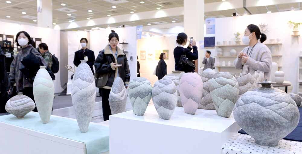 11일 서울 강남구 코엑스에서 열린 '2025 공예트렌드페어'에서 관람객들이 부스를 돌아보고 있다.