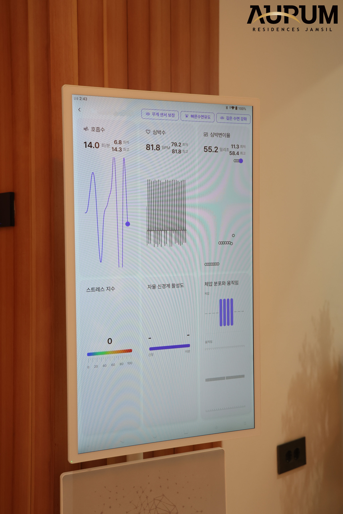 아우름 레지던스 관계자는 "10월 말 주택홍보관을 열었고 11월 중순 유튜브에 소개된 후 찾아오는 사람들이 많아져 이제는 예약을 미리 해야한다"라며 "가장 눈에 띄는 것은 침대에 들어간 센서다. 자는 동안 심장 박동, 숨 쉬는 것을 자동으로 측정한다. 장기간 데이터를 누적 분석 시 고혈압이나 부정맥 같은 위험한 신호를 미리 알아챌 수 있어서 응급 상황에 빠르게 대응할 수 있다"고 전했다.