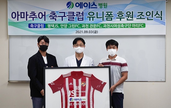 이와 관련 병원은 ▲평택JS ▲안양 그린FC ▲과천 관문FC ▲과천시여성축구단 아리FC 등에 유니폼 후원 등을 지원하게 된다. 안산에이스병원이 지원하는 해당 4개 팀은 도에 기반을 둔 주니어, K5리그, 여성축구 팀이다.