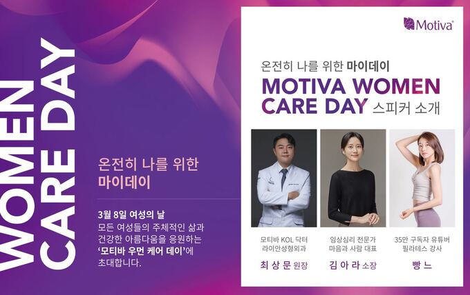 행사에서는 모티바 KOL 성형외과 전문의 최상문 원장, 임상 심리 전문가 김아라 소장, 구독자 30만 명의 홈 트레이닝 유튜버 빵느가 ‘나를 사랑하는 법과 건강한 아름다움’에 대해 이야기할 예정이다.