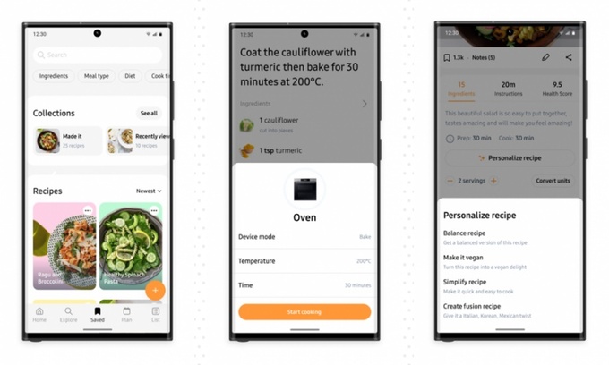 특히 삼성전자만의 '푸드 AI' 기술이 접목돼 개인별 음식 선호와 원하는 영양 균형 수준, 음식 종류 기반의 맞춤형 레시피도 제공한다. 예를 들어 육식 메뉴를 고기 없이 조리할 수 있는 비건(Vegan) 레시피로 변경하거나 이탈리아 메뉴인 ‘뇨끼’를 한식 스타일로 바꿔 퓨전 요리 레시피로 제안하는 식이다.