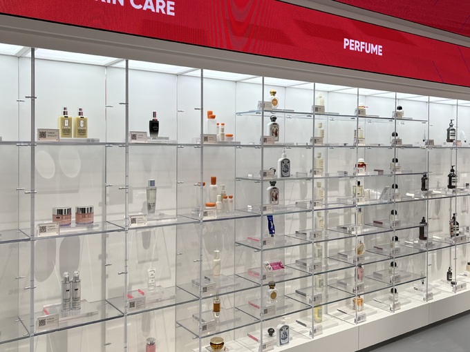 2층과 3층에는 각각 추천 제품과 베스트셀러(온라인 기준) 제품들이 전시돼있다. 상품의 QR 코드를 카메라로 찍으면 오프라인 매장 재고가 확인 가능하고, 쿠폰을 사용해 온라인으로 구매할 수도 있다. 관계자는 “예전에는 중국인 관광객들이 기초화장품을 많이 찾았었는데, 요즘에는 디올, 에스티로더 등 색조 화장 위주로 찾는 편이다. 코로나 이후로 정관장 같은 건강 기능 식품 판매도 많이 늘었다”며 요즘 트렌드를 관찰했다.