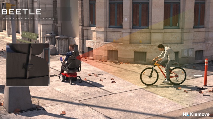 HL클레무브는 ‘비틀(Beetle)’을 내놨다. ‘내 손안의 레이더’를 표방하는 비틀은 자전거, 휠체어 등 다양한 소형 모빌리티에 장착해 디바이스와 연동 사용하는 휴대용 인식 센서 제품이다.