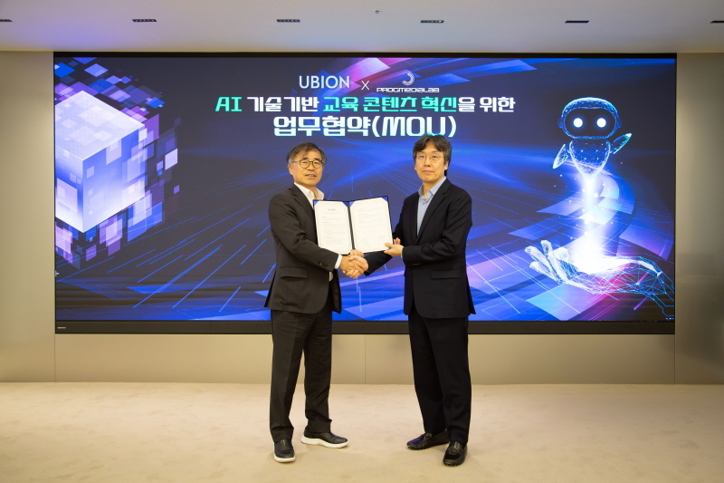 교육분야 AI 전문기업 유비온(UBION)은 콘텐츠 디지털전환 전문기업 프로그미디어랩(ProgMediaLab)과 함께 AI 기술을 기반으로 한 차세대 교육 콘텐츠 혁신 및 서비스 고도화를 위한 업무협약을 체결했다고 21일 밝혔다.