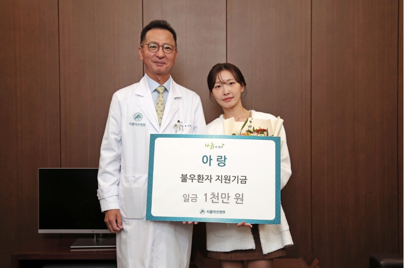 서울아산병원은 이번 후원금을 경제적 상황이 어려운 불우환자들의 치료비를 위해 전액 사용할 예정이다.