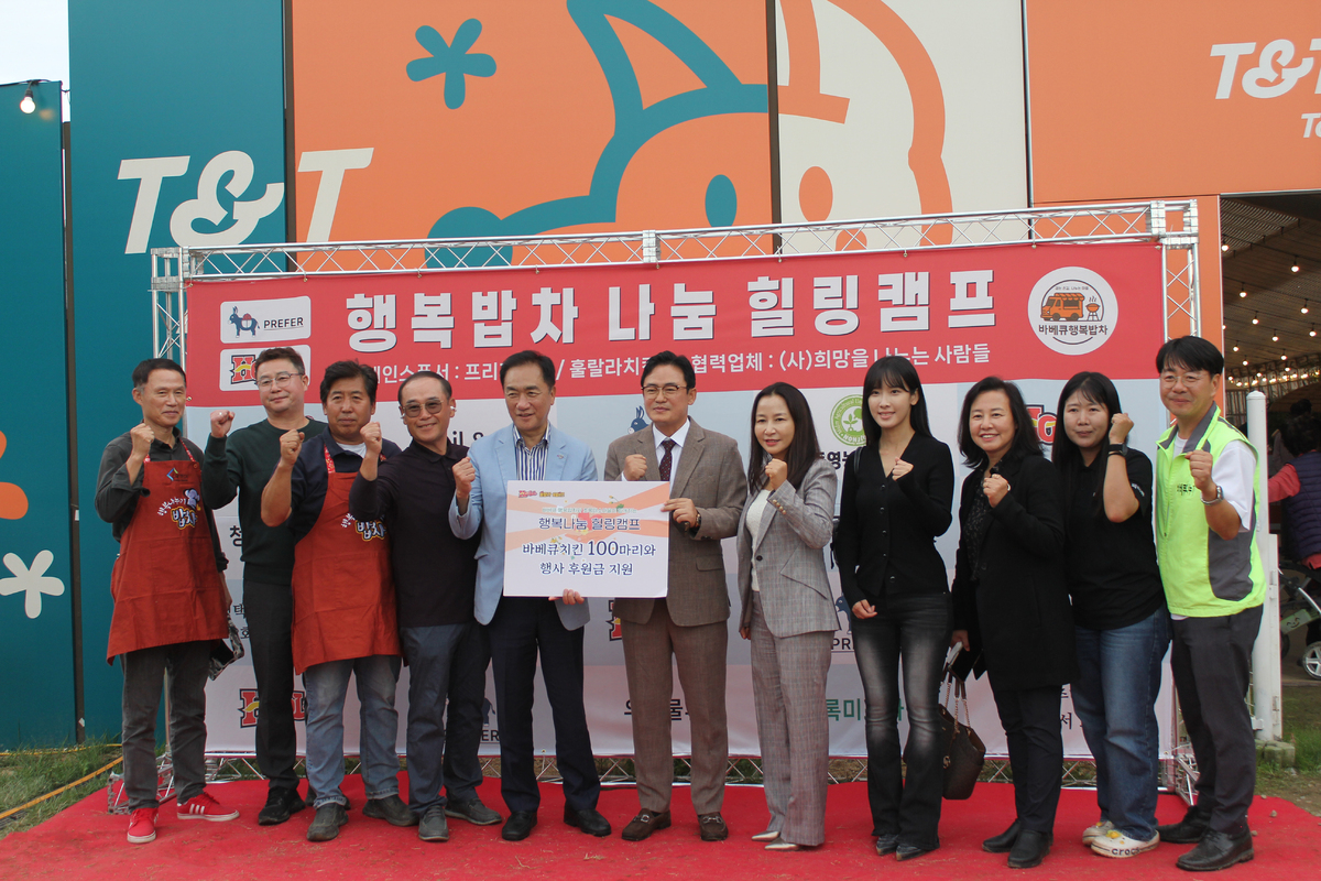 훌랄라참숯치킨 등 10여 개 외식 브랜드를 운영하고 있는 훌랄라그룹(회장 김병갑)이 지난 10월 17일 평택 초록미소마을에서 열린 ‘행복나눔 힐링캠프’를 통해 지역사회의 소외된 이웃들에게 따뜻한 위로와 사랑을 전했다. 이번 행사는 비영리단체 바베큐 행복밥차와 (사)희망을나누는사람들, 훌랄라치킨이 공동으로 주관한 가운데 정장선 평택시장을 비롯한 지역 인사들이 참석하며 성황리에 진행됐다.