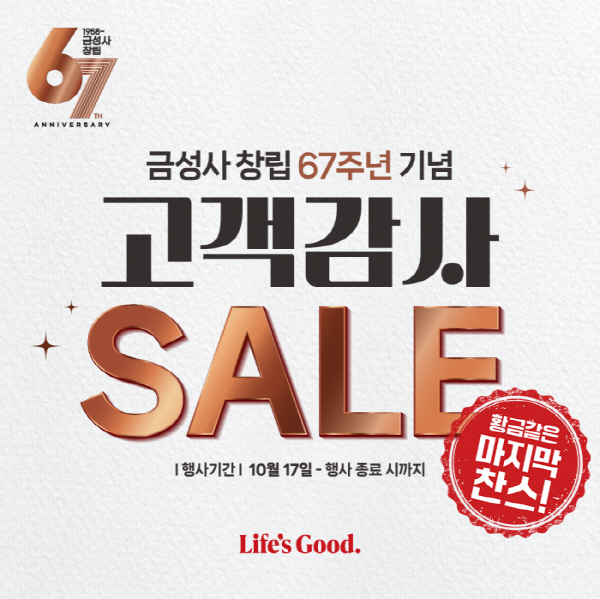 LG전자 베스트샵은 1958년 금성사 창립 이후 67년간 변함없는 신뢰와 사랑을 보내준 고객들에게 감사의 마음을 전하기 위해 지난 17일부터 ‘고객감사 SALE’을 진행했으며 23일부터 기존 프로모션보다 한층 강화된 혜택이 제공한다고 전했다.