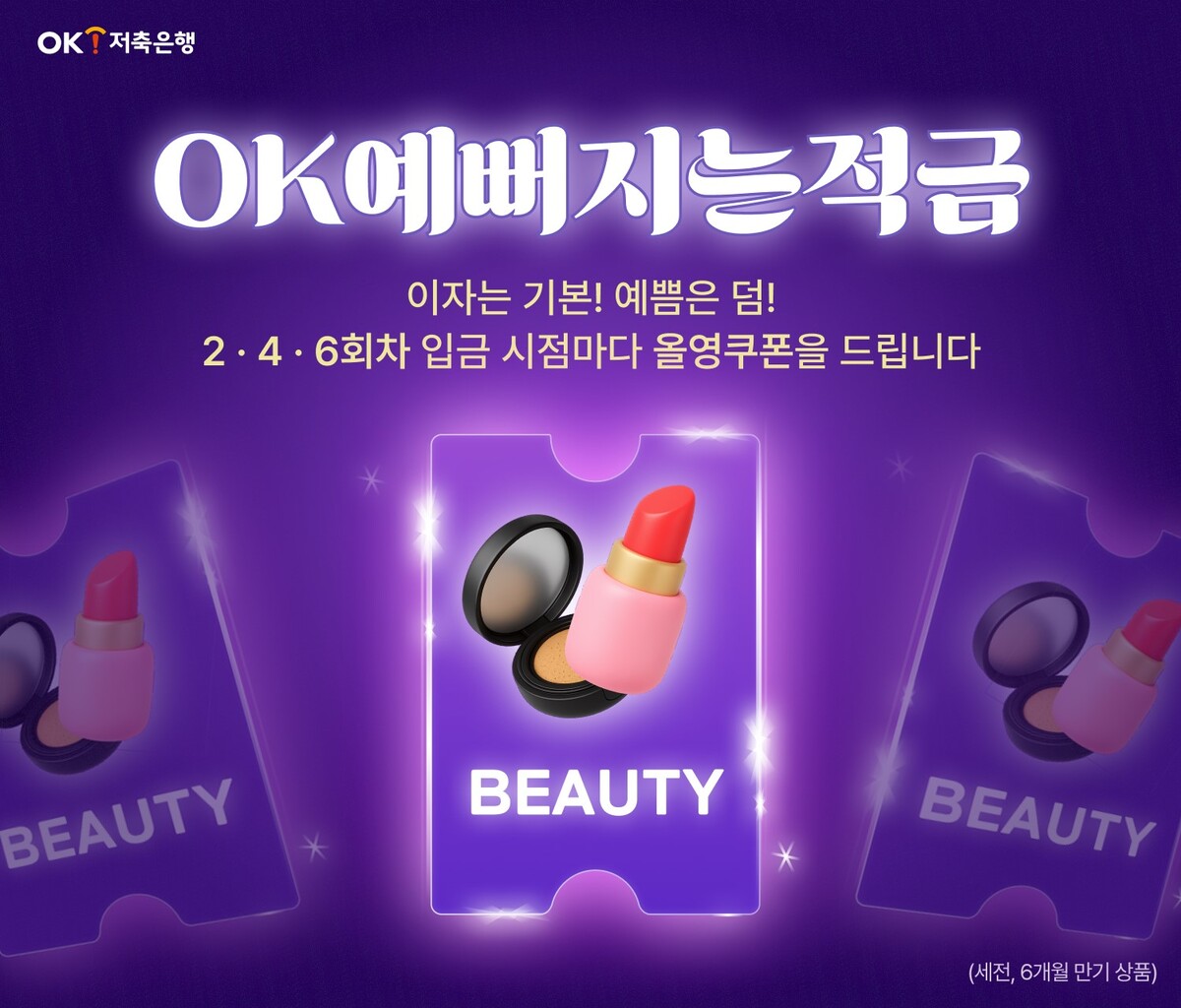 OK저축은행 관계자는 “OK예뻐지는적금은 이자와 쿠폰을 모두 받을 수 있는 ‘이중 혜택형 상품’을 저축하는 습관을 기르는 데 그치지 않고 금융과 라이프스타일을 잇는 새로운 경험을 제공하고자 기획됐다”며 “앞으로도 OK저축은행은 고객의 일상 속에서 금융이 녹아내릴 수 있도록 다양한 생활밀착형 금융서비스를 제공해 나가겠다”고 말했다.