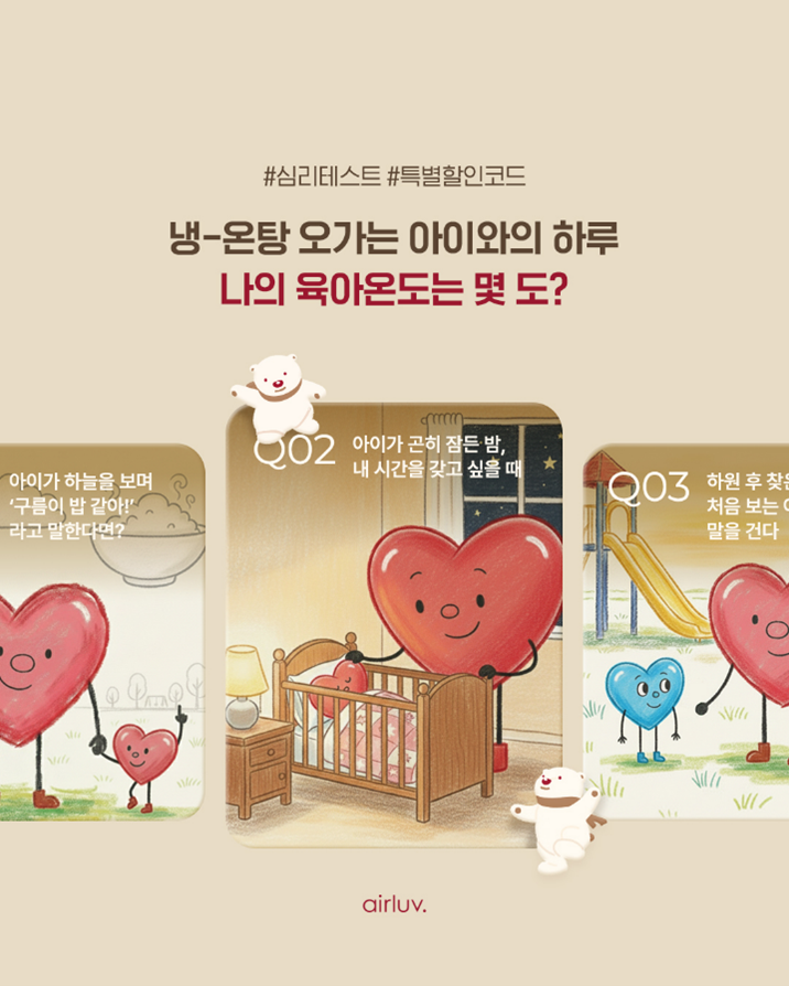 이번 테스트는 현실 육아 속에서 부모가 보이는 다양한 반응을 통해, 본인의 육아 에너지가 어디에서 비롯되는지를 분석하는 참여형 콘텐츠다. 결과는 –100도부터 +100도까지의 ‘육아 온도’로 표현되며, ‘태양보다 뜨거운 햇살형(+100도)’부터 ‘대학 입시까지 로드맵을 그려놓는 전략적 냉온조절형(–100도)’까지 개성 넘치는 유형이 마련되어 있다. 또, 나와 잘 맞는 유형과 안 맞는 유형까지 확인할 수 있어, 부모들 사이에서 재미와 공감이 동시에 폭발할 것으로 기대된다.