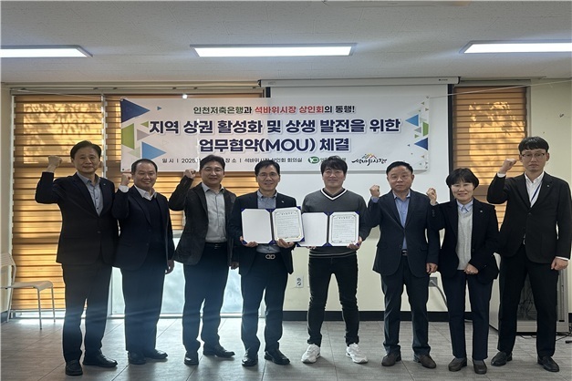 인천저축은행은 지역 상권 발전을 위해 석바위시장 상인회와 ‘지역경제활성화 및 전통시장 상생협력 강화를 위한 업무협약(MOU)’을 체결했다고 6일 밝혔다.