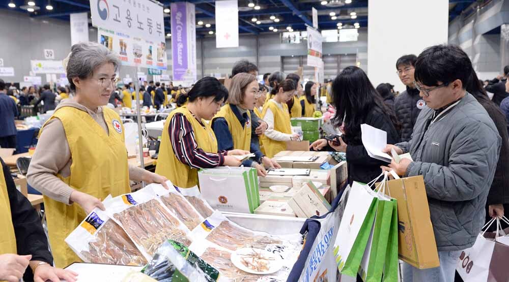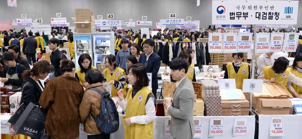10일 서울 강남구 코엑스에서 열린 '2025 적십자 바자'에서 시민들이 제품을 살펴보고 있다.