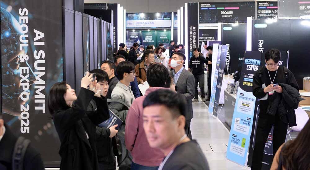 10일 서울 강남구 코엑스에서 열린 'AI 서밋 서울 앤 엑스포 2025'에서 관람객들이 부스를 돌아보고 있다.