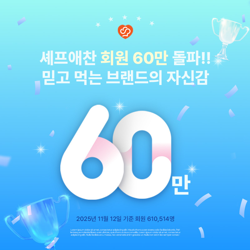 프리미엄 한식 브랜드 셰프애찬(대표 박우연)이 자사 공식 온라인몰 회원 수 60만 명을 돌파했다고 13일 밝혔다.