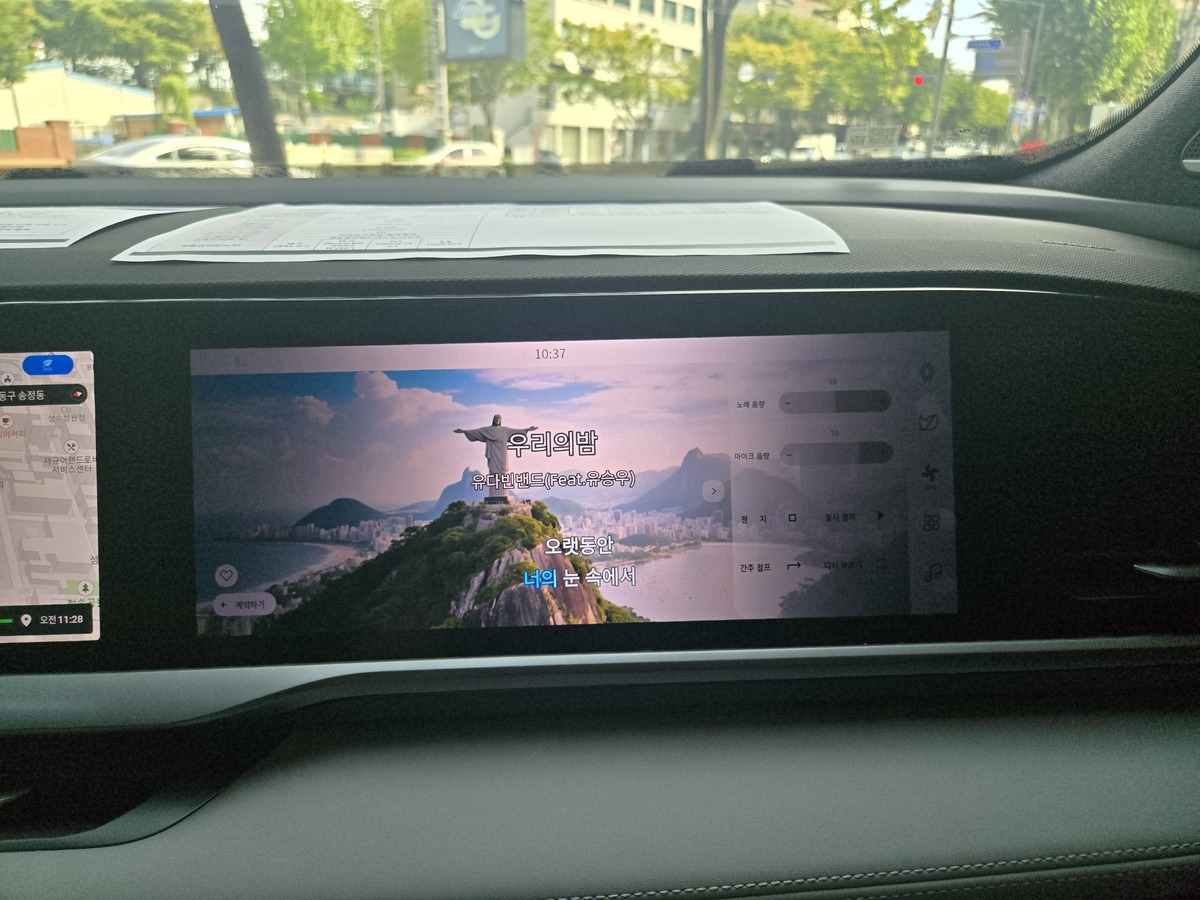 직접 체험해보니 R·Beat는 꽤 매력적인 기능이었다. 차 안에 비치되어 있던 마이크를 꺼내 연결하자 차 안이 순식간에 노래방으로 변했다. 곡을 선택하면 가사가 화면에 표시되고 반주는 차량 스피커를 통해 실내 전체로 퍼진다. 생각보다 음질이 깔끔하고 울림이 적어 동전 노래방에 온 듯한 느낌을 줬다. 운전 중 시야 방해를 방지하기 위해 조수석 화면에서만 작동하지만, 마이크는 2개라 함께 부를 수 있어 장거리 여정을 힘들어하는 어린아이들 둔 가족들에게 안성맞춤일듯했다.