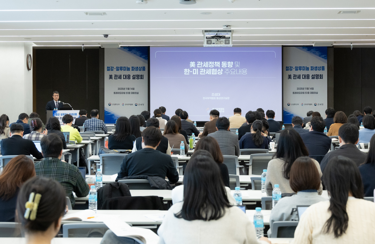 한국무역협회(KITA, 회장 윤진식)는 14일 서울시 강남구 삼성동 트레이드타워에서 산업통상부(장관 김정관), 관세청(청장 이명구)과 공동으로 ‘철강·알루미늄 美 관세 대응 설명회’를 개최했다.