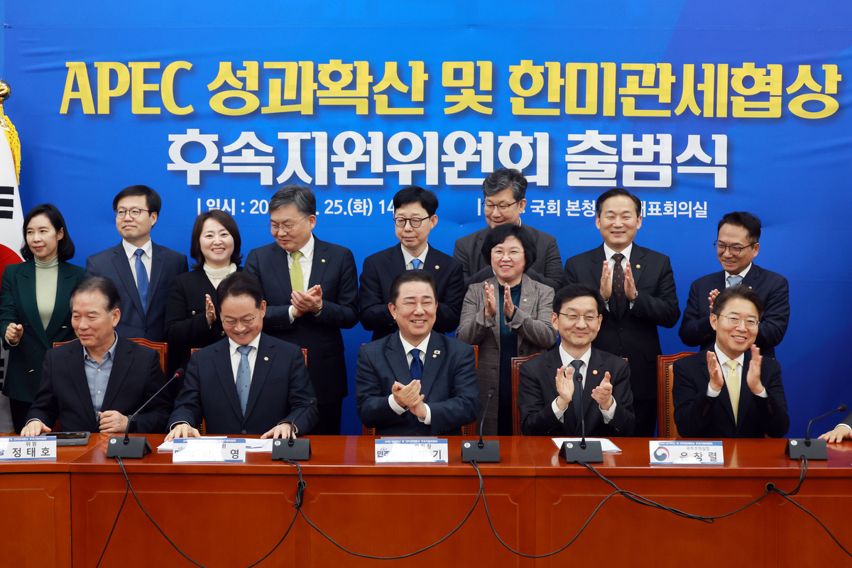 [속보] 민주당, 대미투자특별법 발의…미국 관세 11월1일 소급 적용 입력 2025-11-26 09:52:48 수정 2025-11-26 09:52:48 김병기 더불어민주당 원내대표와 윤창렬 국무조정실장 등 참석자들이 지난 25일 서울 여의도 국회에서 열린 APEC 성과확산 및 한미관세협상 후속지원위원회 출범식에서 기념촬영을 마친 뒤 자리로 향하고 있다. 뉴시스 <끝> 20251126504926 0518000000000 0 2025-11-26 9:52:48 2025-11-26 9:52:48 0 [속보] 민주당, 대미투자특별법 발의…미국 관세 11월1일 소급 적용 한준호 05b5df16-eaa9-4d25-84f6-8ca3f3f5b58f tongil77@segye.com