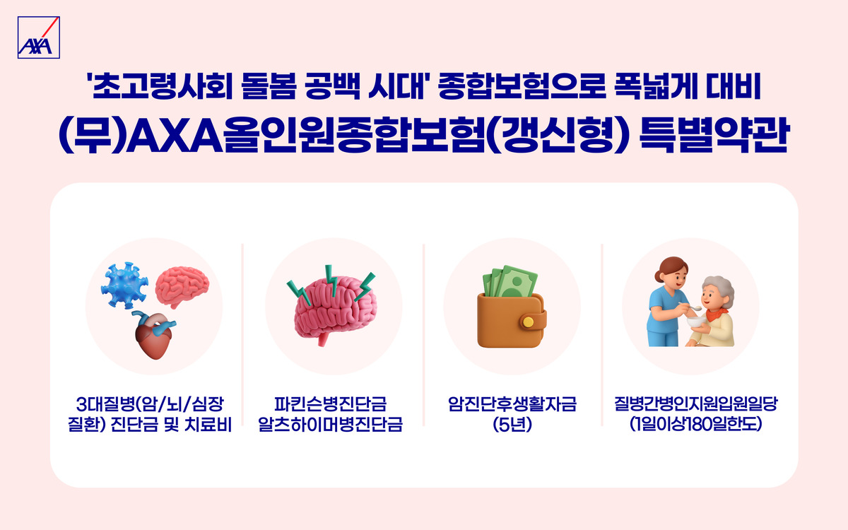 악사손보 관계자는 “부모세대의 질환 증가와 자녀세대의 생계 부담이 커지면서 질병 대비는 가족 전체의 삶과 직결된 핵심 요소가 됐다”며 “악사손보는 장기 케어가 필요한 질환을 실질적으로 대비할 수 있도록 체계적인 보장을 마련하고, 개인의 상황에 따라 필요한 보장만 선택할 수 있는 맞춤형 설계를 제공하고 있다. 앞으로도 급변하는 사회 구조 속에서 고객들이 예상치 못한 여러 리스크에도 안정적으로 일상을 유지하고 케어(CARE) 받을 수 있도록 지원하겠다”고 전했다.