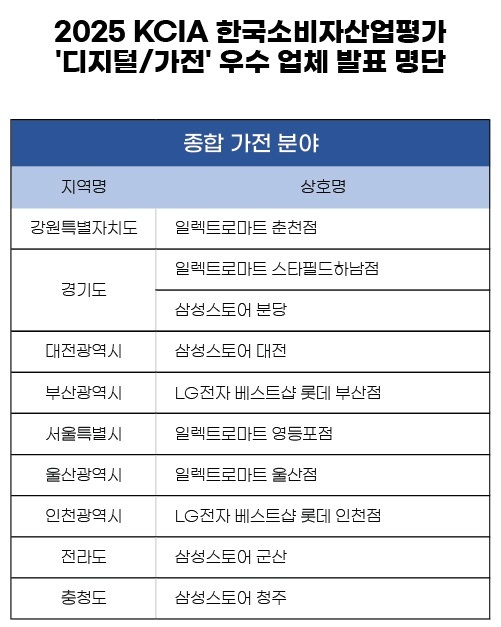 2025 KCIA 한국소비자산업평가 ‘디지털/가전’은 일상의 편의를 높이는 기술 혁신 속에서 소비자의 라이프스타일에 밀접하게 적용되며 실제 이용 경험을 통해 소비자들로부터 높은 평가를 받은 우수 업체를 매년 선정한 후 대중에 소개하기 위하여 진행한다.