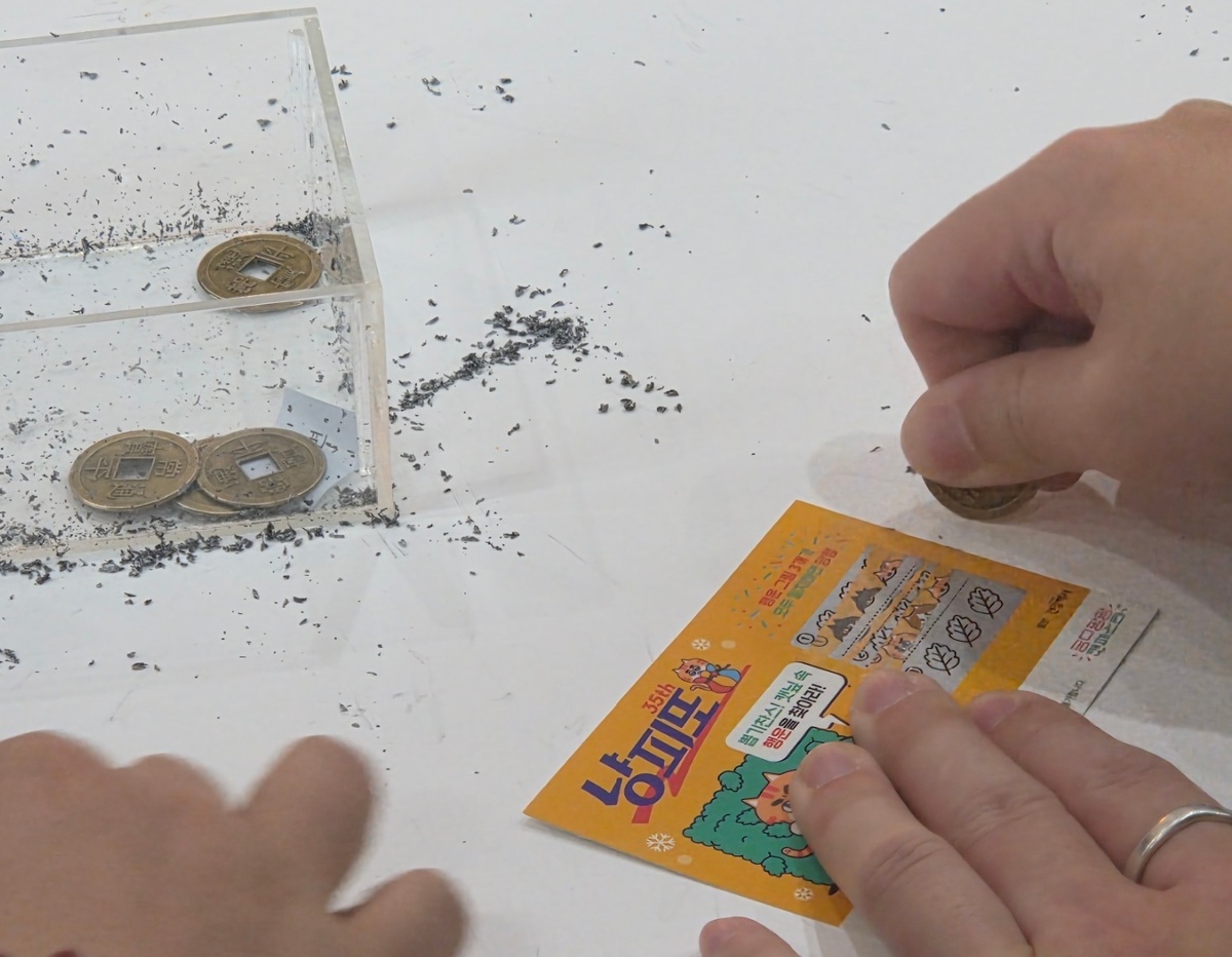 크리스마스 분위기가 물씬 나는 포토존, 재밌고 센스 있는 방명록 모음도 눈길을 끌었다. 사전예매자를 위한 꽝 없는 복권 ‘냥피또’의 은박을 동전으로 긁는 사람들의 모습에선 설렘이 전해졌다.