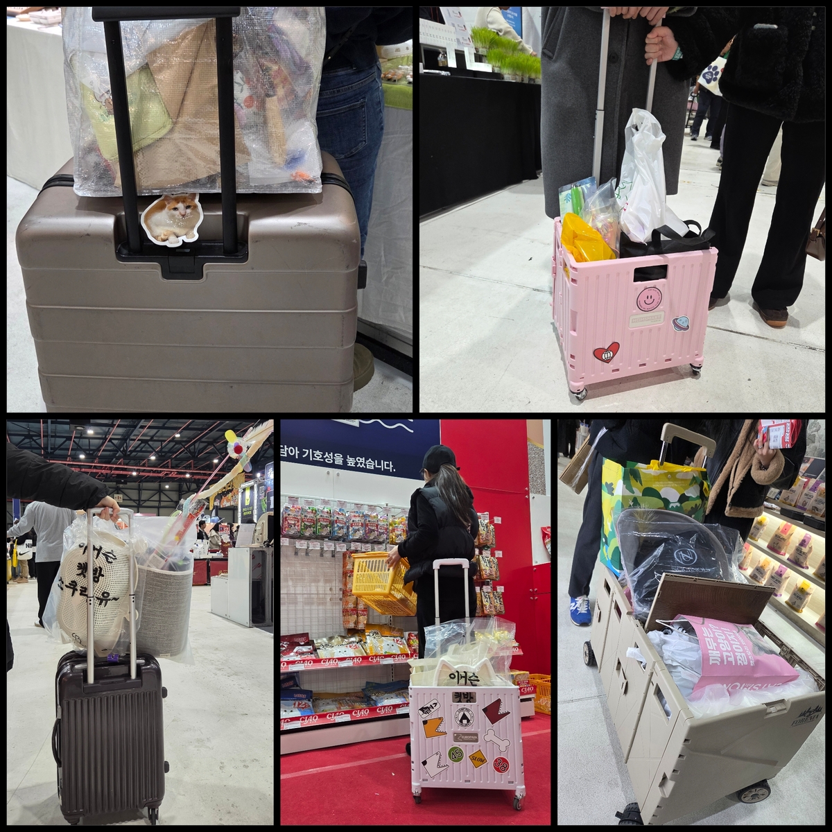 바퀴 달린 쇼핑카트에 한 가득 용품을 실은 방문객은 “다묘가정 집사라 살 것이 많아서 항상 쇼핑카트를 챙긴다”며 “캐리어는 열었다 닫았다 해야 해서 조금 번거롭다. 11년째 고양이들을 모시는 베테랑 집사로서 쇼핑카트를 추천한다”며 엄지를 세웠다.