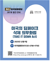 허병조 국회도서관 법률정보실장은 “우리나라는 '성폭력범죄의 처벌 등에 관한 특례법','아동·청소년의 성보호에 관한 법률', '정보통신망 이용촉진 및 정보보호 등에 관한 법률'을 최근 개정해 딥페이크 성범죄에 대한 벌칙을 강화하고 플랫폼의 영상물 삭제 의무를 부과하는 규정을 마련했다”라면서 “우리나라의 법률이 미국의 ‘딥페이크 삭제 의무화법’과 함께 딥페이크 영상물 유포 퇴치라는 동일한 목적으로 동시대에 제·개정됐다는 점에서 우리나라의 입법에 참고가 될 것이다”고 말했다.