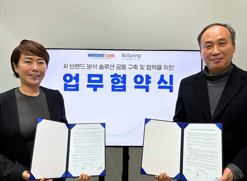 이번 협력은 양사의 전문성과 실무 경험을 바탕으로 GEO 시대의 브랜드 전략 수립에 새로운 기준을 제시할 것으로 기대된다. 함샤우트 글로벌은 25년 이상 400개 이상의 국내외 브랜드를 대상으로 브랜드 컨설팅, 마케팅 콘텐츠 기획 및 제작, 디지털 PR 등 마케팅 전 영역을 수행해왔으며 AI 마케팅 솔루션을 업계에 선제적으로 도입해 시장을 리드해왔다. 비즈스프링은 20년 이상 온라인 고객 행동과 마케팅 데이터를 기반으로 다양한 산업에 분석 솔루션과 기술을 제공해왔으며, CDP, 추천·개인화, 마케팅 자동화 등 MarTech·AdTech 분야의 전문성을 바탕으로 AI 기반 데이터 분석 영역까지 확장해왔다.
