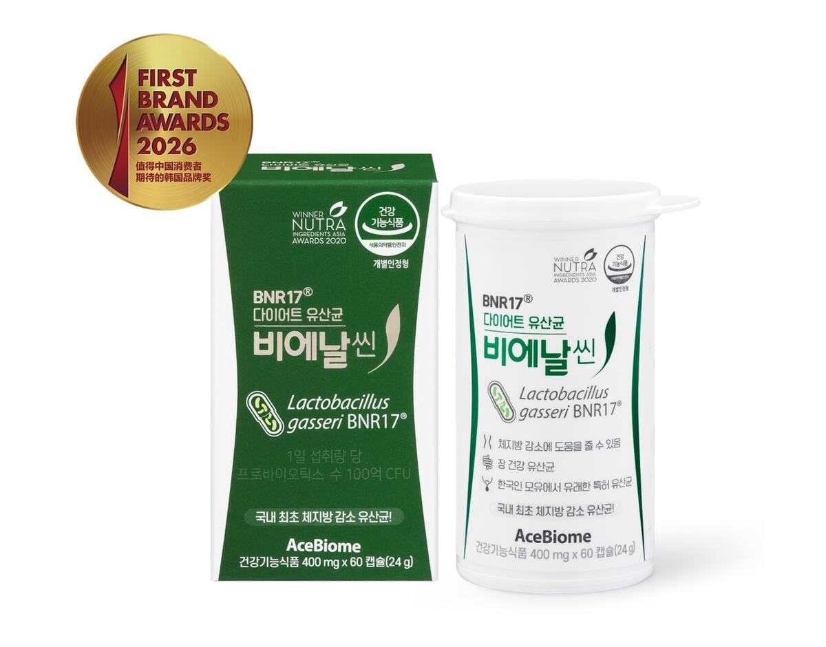 마이크로바이옴 기반 건강기능식품 전문기업인 에이스바이옴(AceBiome, 대표 김명희)은 오늘 자사 대표 프리미엄 다이어트 유산균 브랜드인 ‘비에날씬(BNRThin)’이 중국 소비자가 직접 참여해 선정한 ‘2026 대한민국 퍼스트브랜드 대상’ 다이어트 유산균 부문에서 2년 연속 대상을 수상했다고 7일 밝혔다.