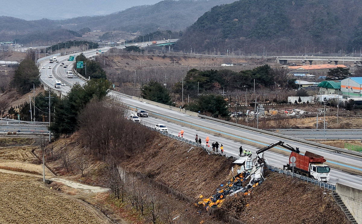 통행 재개에도 불구하고 오전 11시 현재 사고 현장에는 종잇장처럼 구겨져 형체를 알아보기 어려운 화물차가 갓길에 늘어서 있었고 도로 경사면에는 적재물도 쏟아져 있어 처참했던 사고 당시를 짐작게 했다. 한꺼번에 4명의 사망자가 발생한 쏘나타 승용차 사고 현장에는 파편이 여기저기흩어져 사고 당시 상황을 간접적으로 보여줬다.