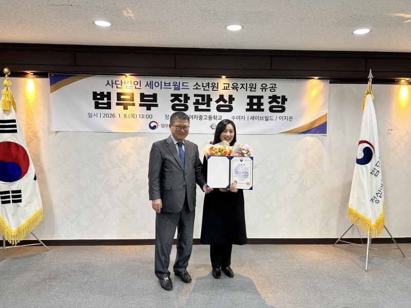 법무부 산하 사단법인 세이브월드 교사 이지은씨가 지난 8일 법무부 장관 표창을 받았다고 12일 밝혔다.